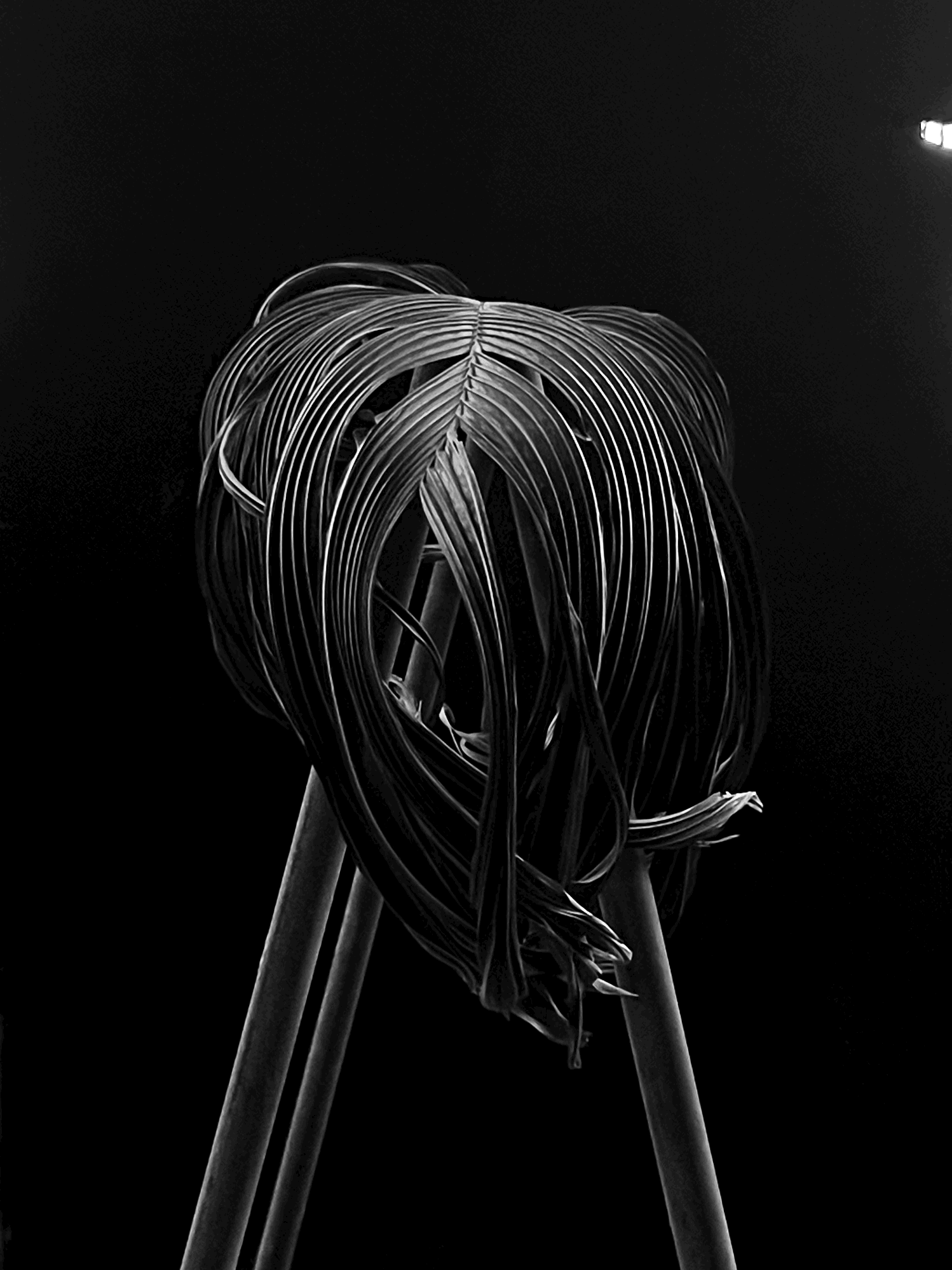 A piece developed in Trinidad as part of the “River Series” taking inspiration from the local spiritual folklore that fixates on the riverbank. Materials: Spray paint, Foliage, Cement, Metal